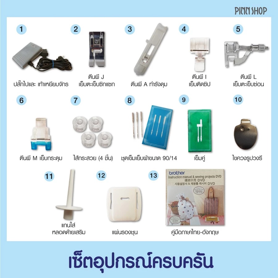 ⁃ ความเร็วในการเย็บสูงสุด 850 ตะเข็บต่อนาที
