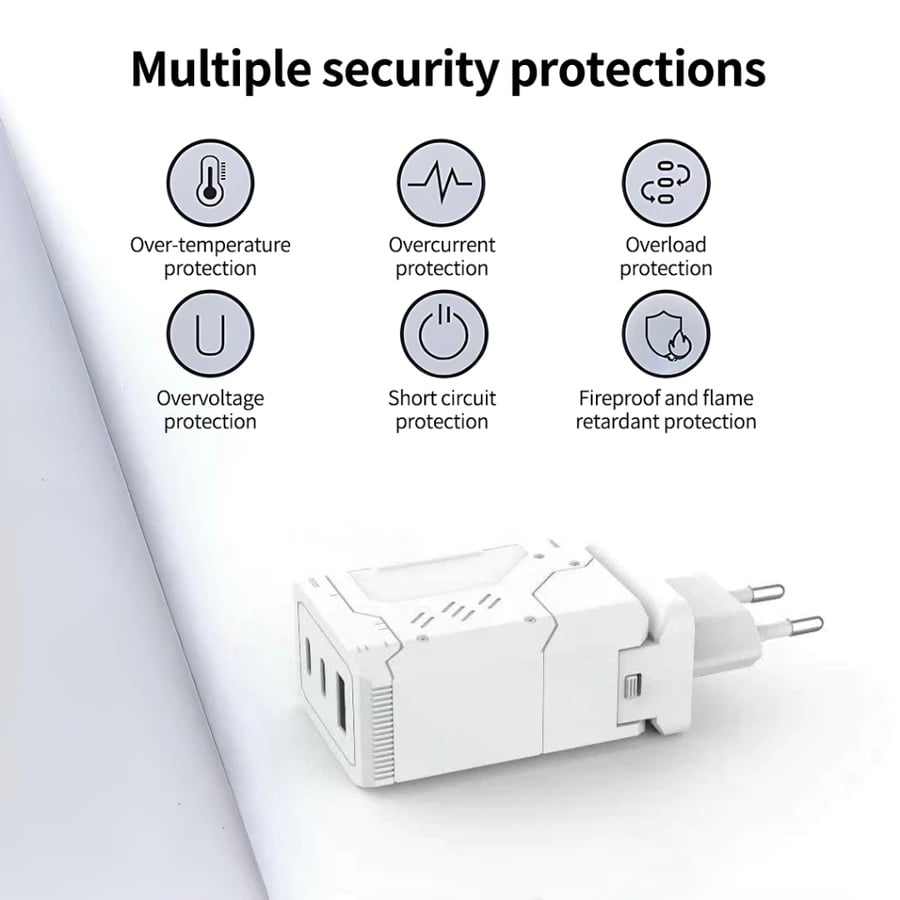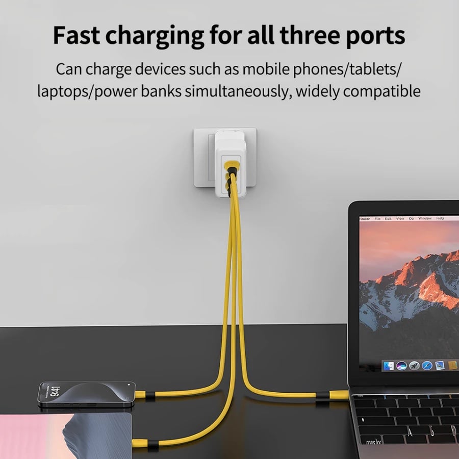 การชาร์จอย่างรวดเร็วสามพอร์ต: 2 × Type-C + 1 ×พอร์ต USB-A