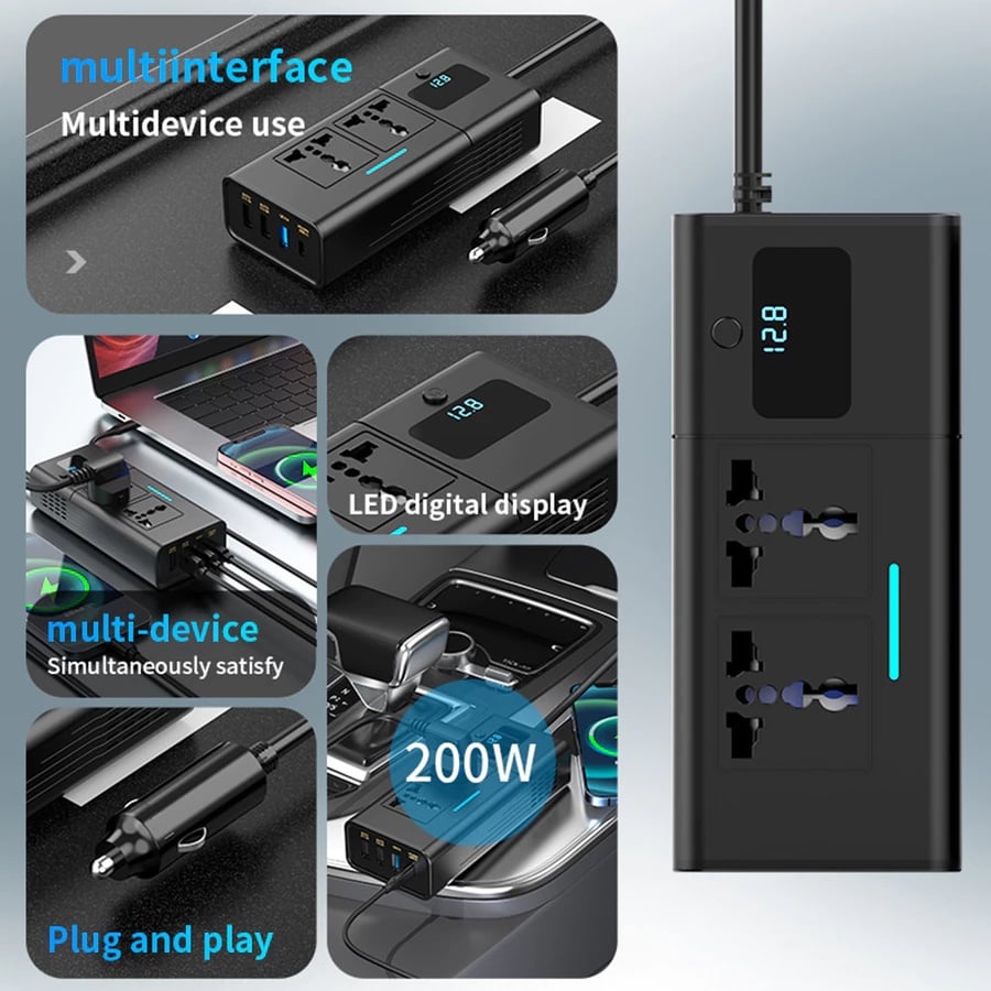 2. Dc to AC Converter ปลั๊กไฟ AC 3 ช่องและพอร์ตที่จุดบุหรี่ 2 พอร์ตพอร์ตชาร์จ USB 4.2A 6