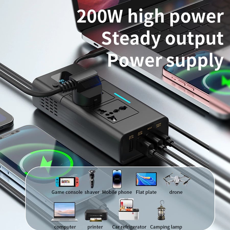 1. ให้กำลังขับสูงสุด 200 วัตต์ [ข้อดีของเรา] ให้กำลังไฟ DC ถึง AC ต่อเนื่อง 200 วัตต์ และกำลังขับสูงสุด 200 วัตต์