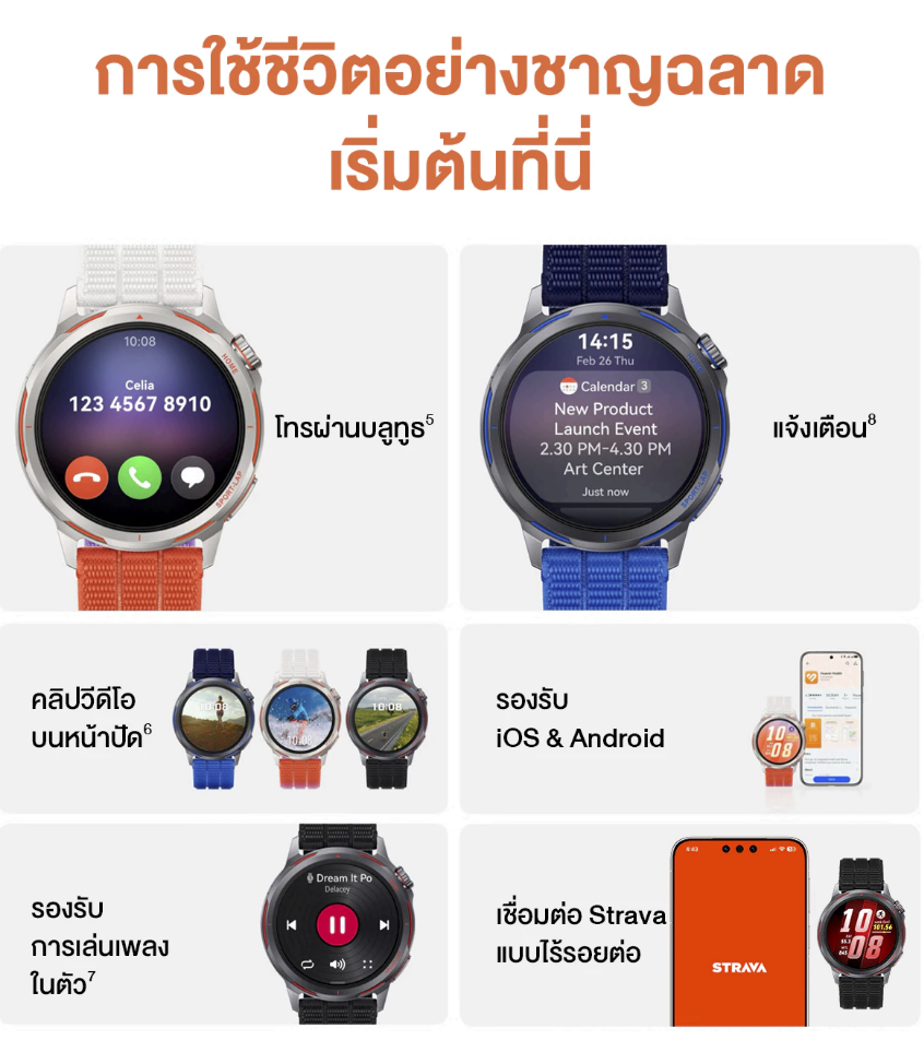 • หน้าจอสี AMOLED รองรับระบบสัมผัสเต็มหน้าจอ