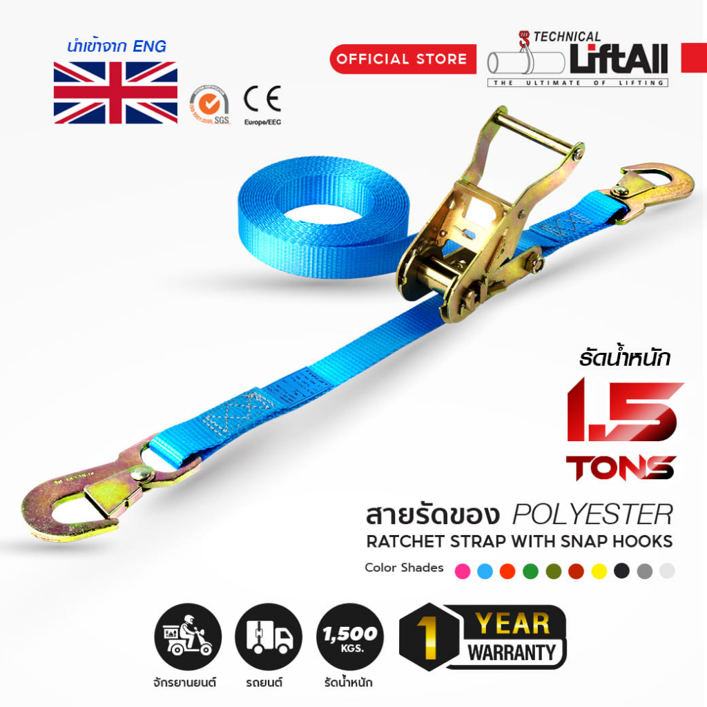 สินค้ามาตรฐานยุโรป โดยบริษัท เทคนิคอล ลิฟท์-ออล จำกัด ผู้นำเข้า จัดจำหน่าย และผลิตตามสั่ง อุปกรณ์สำหรับงานยกของหนัก งานสายรัดของสำหรับขนส่งทุกชนิด