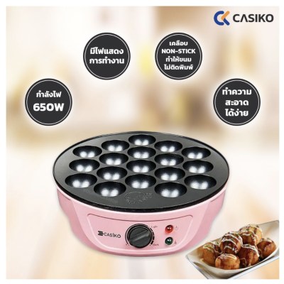 คุณสมบัติพิเศษ - กำลังไฟ 650 วัตต์ - ทำได้ครั้งละ 18 ชิ้น - หูจับสัมผัสได้ ไม่ร้อน - เคลือบด้วย non-stick รายละเอียดสินค้า Casiko เครื่องทำทาโกะยากิ รุ่น CK-5004 (สีแดง) ทาโกยากิ ขนมญี่ปุ่นที่ใครๆ ชอบกิน ใครว่าทำยาก คุณเองก็ทำได้ง่ายๆ เพียงแค่ใช้ CASIKO เครื่องทำทาโกยากิ - รุ่น CK-5004 ที่จะช่วยให้คุณอร่อยกับทาโกยากิฝีมือตัวเอง คุณสมบัติ สนุกสนานกับการทำทานเอง ให้คุณสนุกสนานกับการทำทาโกยากิทานเองได้ง่ายๆ ด้วย CASIKO เครื่องทำทาโกยากิ - รุ่น CK-5004เครื่องทำทาโกยากิที่แสนง่าย ด้วยขนาด 26 x 27 x 12 ซม. กำลังไฟ 650 วัตต์ สามารถทำได้ 18 ชิ้น ผิวหน้าแม่พิมพ์เคลือบ non-stick กันติด ใช้ง่าย อาหารไม่ติดแม่พิมพ์ ทำความสะอาดได้ง่าย หูจับสัมผัสได้ ไม่ร้อนเพื่อให้คุณสนุกสนานกันทั้งครอบครัว