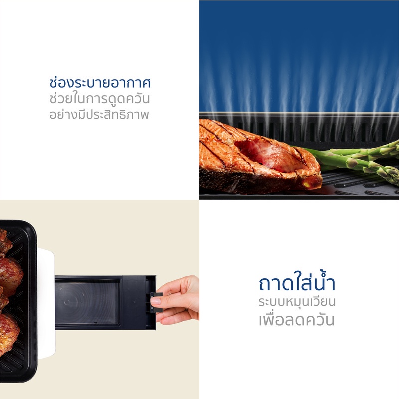 สร้างความสนุกสนานให้กับมื้อพิเศษของคุณ กับเมนูปิ้งอย่างแสนอร่อย ด้วยเตาย่างไร้ควัน 3in1 จากแบรนด์ Alectric ที่สามารถทำได้ทั้ง ต้ม ย่าง และ ทาโกะยากิ ปรับอุณหภูมิได้ตามความต้องการ มีปุ่ม เปิด / ปิดเครื่อง ปรับอุณหภูมิ / ตั้งเวลา ระบายควัน (กดค้าง 3 วินาที เพื่อเปลี่ยนเป็นหม้อไฟ) มีเซ็นเซอร์ป้องกันไฟฟ้าลัดวงจร, อุณหภูมิสูงเกิน