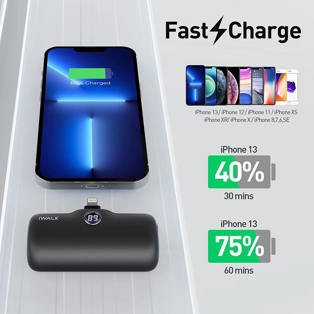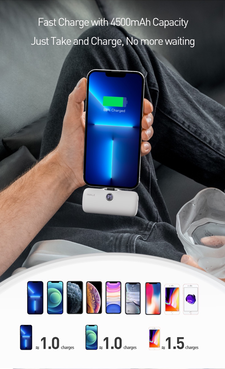 ด้วยความขนาดความจุ 4800 mAh สามารถชาร์จ iPhone13,12 ได้ประมาณ 1 รอบเต็ม