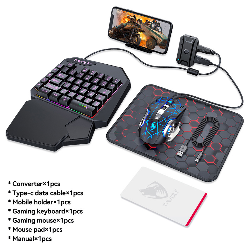 ข้ามพรมแดน หมาป่าสายฟ้าTF900 มือเดียวคีย์บอร์ดบัลลังก์ชุดโทรศัพท์มือถือเปิดไฟเกมไก่เกมมือถือคีย์บอร์ดขนาดเล็กจุด