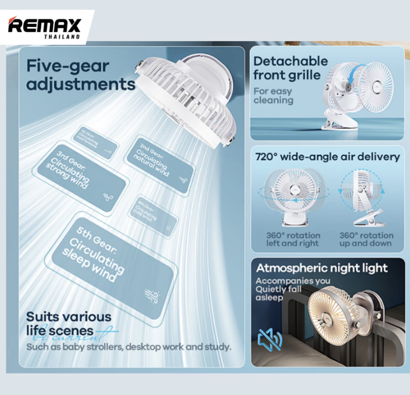 -ปรับความแรงได้ 4 ระดับ 2 รูปแบบ (แบบลมต่อเนื่อง และแบบลมปรับอัตโนมัติ)
