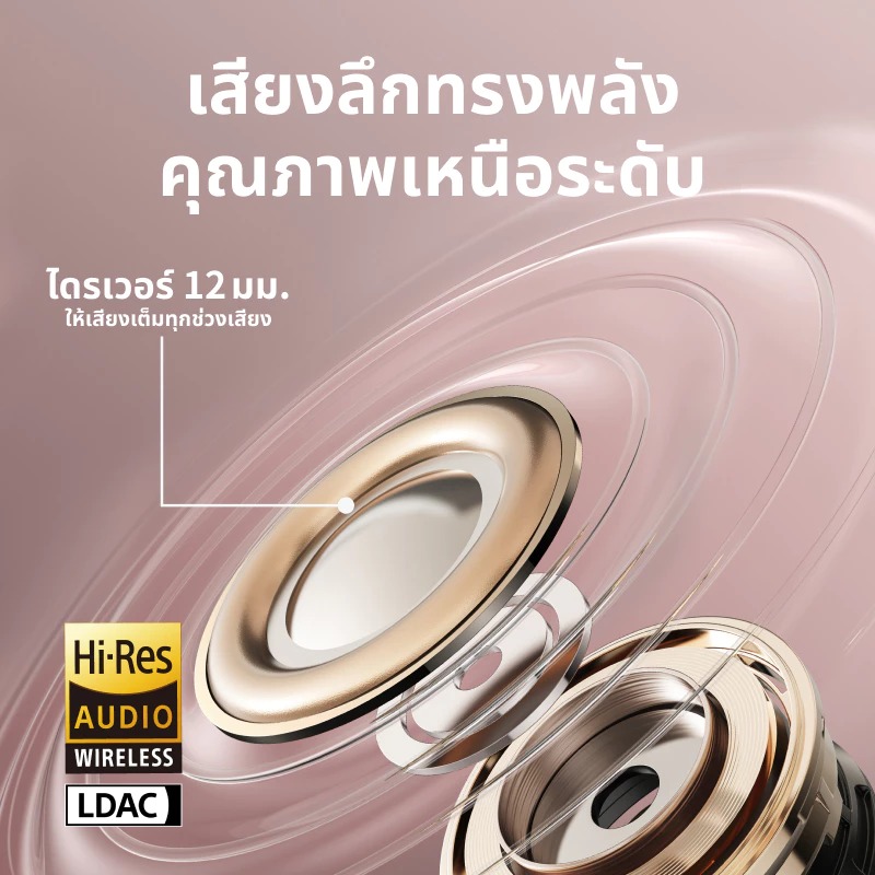 Our advanced virtual bass technology enriches the lows, complemented by a 12mm titanium-coated driver