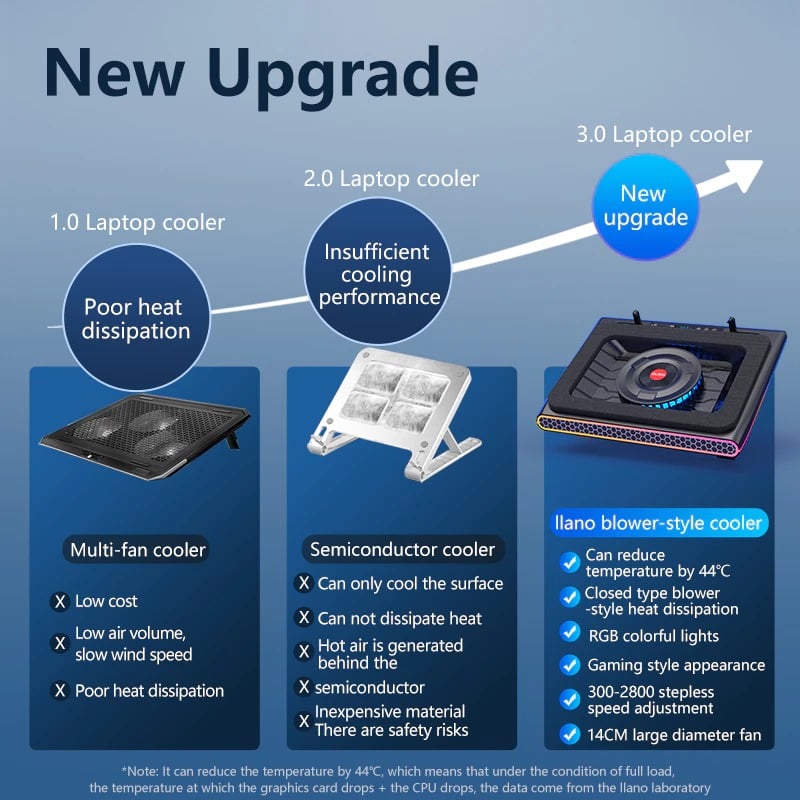 การออกแบบช่องรับอากาศด้านล่างช่วยขจัดปัญหาการไหลย้อนกลับของความร้อนของแล็ปท็อปไอเสียด้านหลังได้อย่างสมบูรณ์