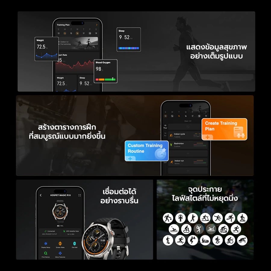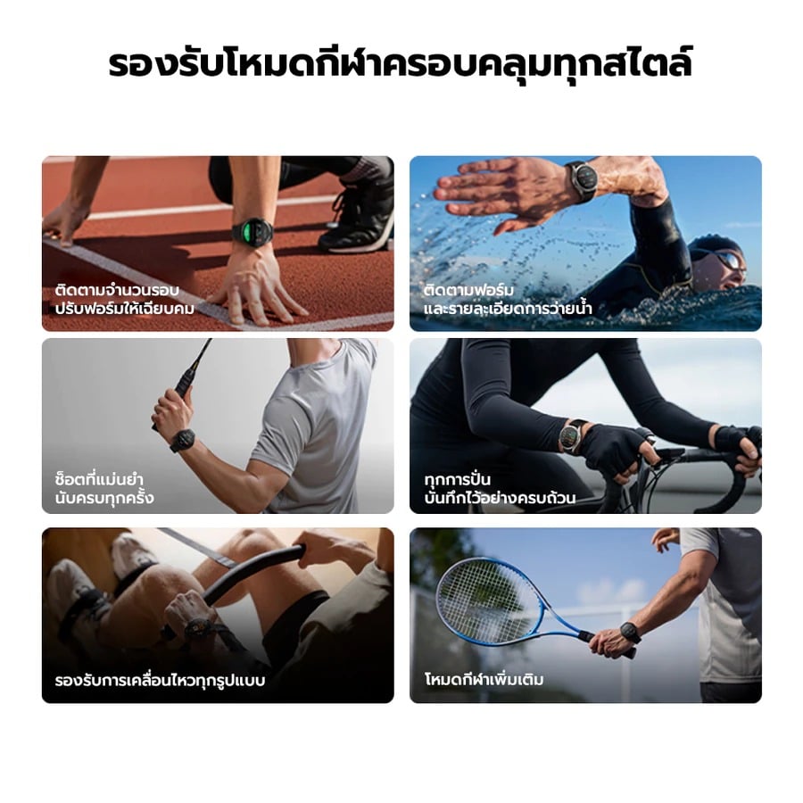 * รองรับโหมดกีฬาครอบคลุมทุกสไตล์ทั้งกีฬากลางแจ้ง และในร่ม