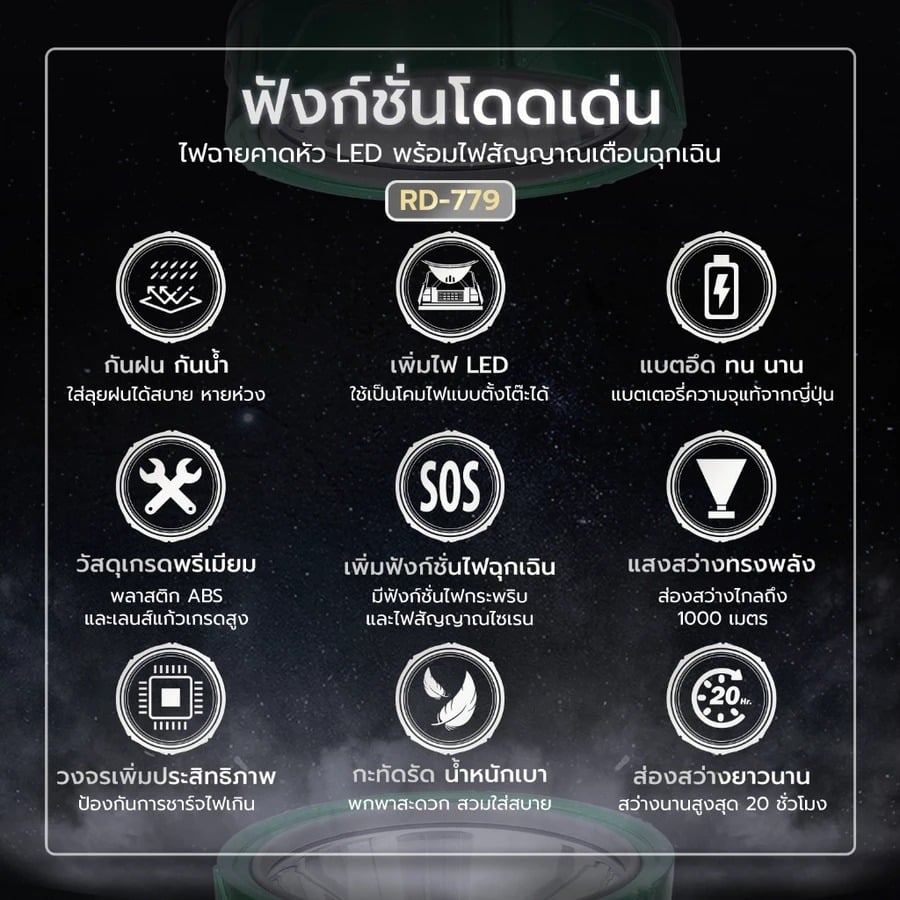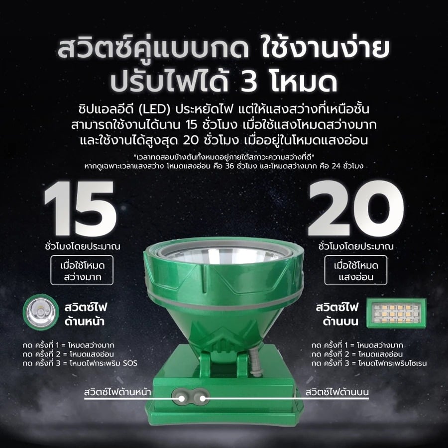 ไฟฉายส่องสว่าง กันน้ำ กันฝน แบตอึด