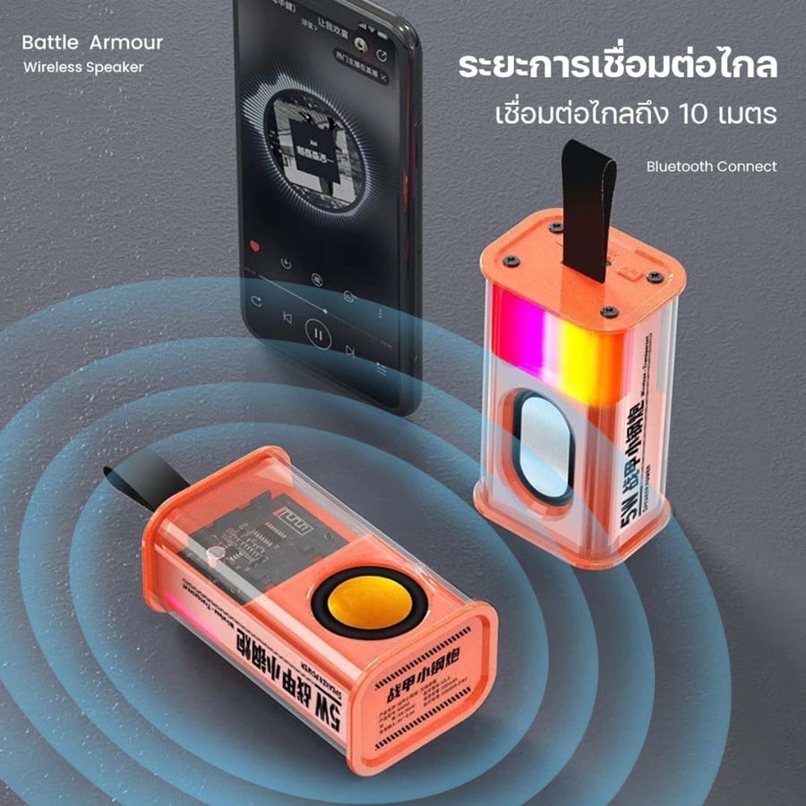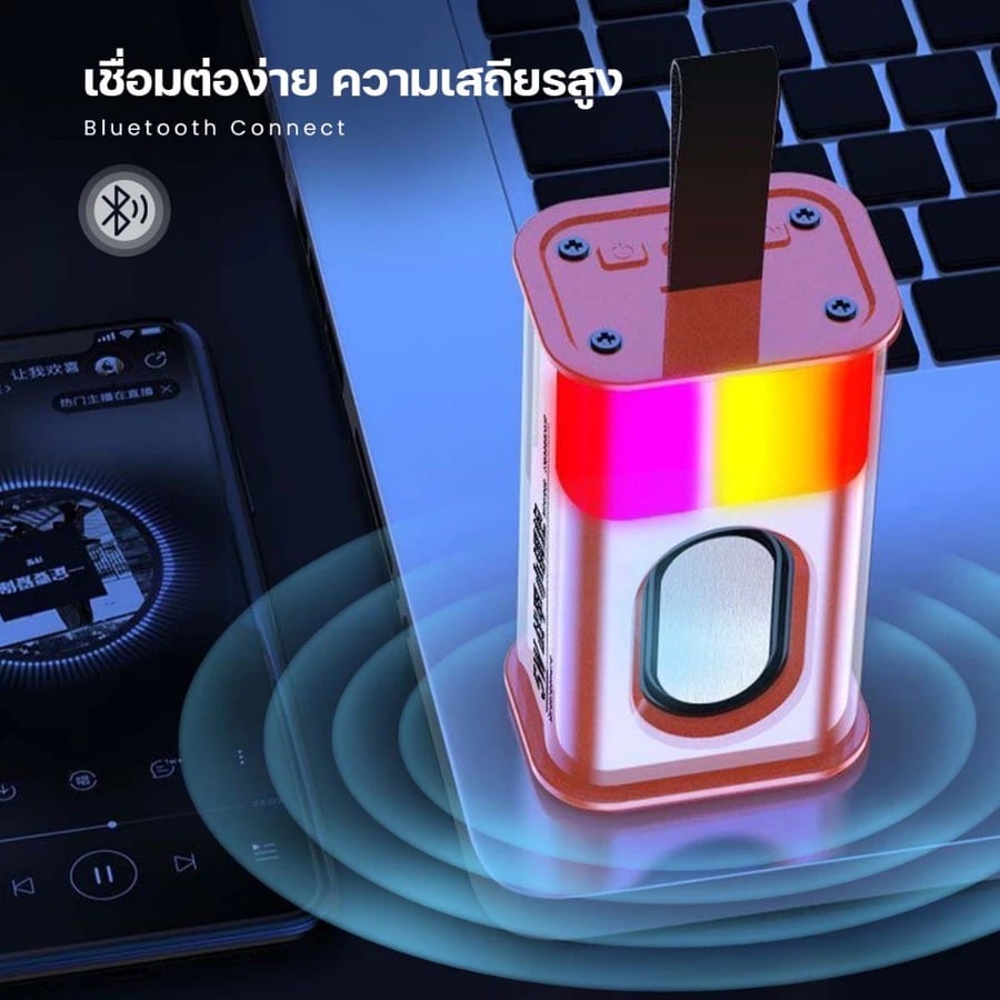 ลำโพงบลูทูธ ขนาดกระทัดรัด พกพาง่าย มีไฟ RGB ปรับโหมดได้