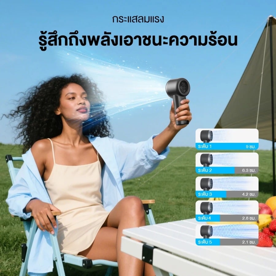 TurboFan Air พัดลมมือถือขนาดเล็ก ลมทรงพลัง หน้าจอ LED