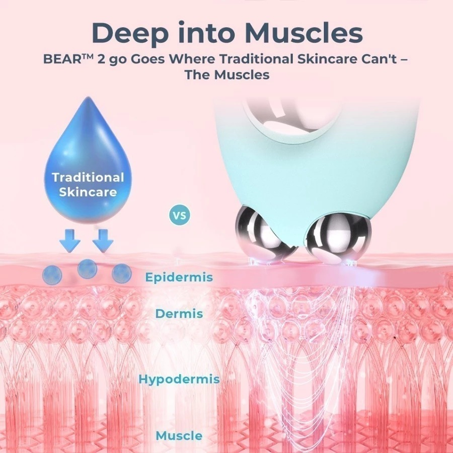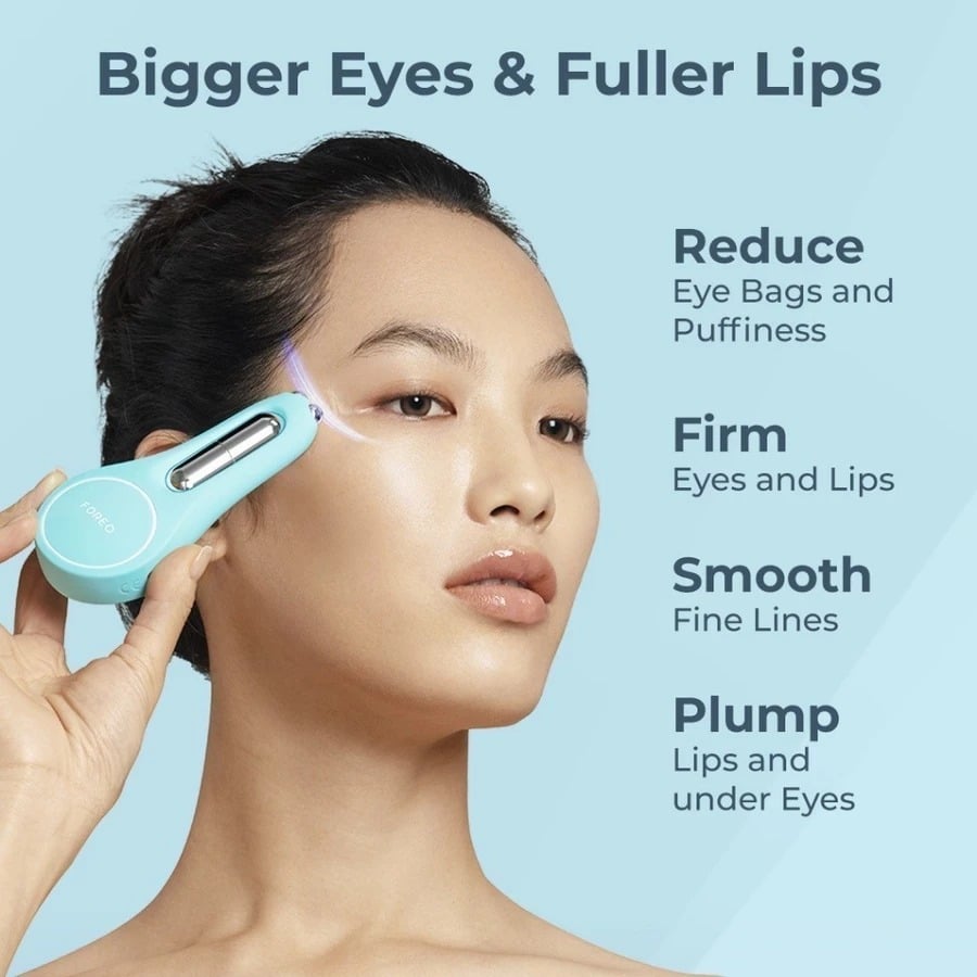 - นําโลหะทรงกลมทั้งสองสัมผัสบนใบหน้าของคุณเบาๆ แล้วค่อยๆเลื่อนอุปกรณ์ไปตามผิวรอบดวงตา หางตา