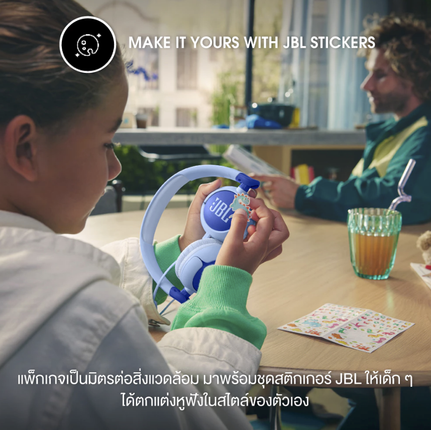 แพ็กเกจที่เป็นมิตรต่อสิ่งแวดล้อม มาพร้อมชุดสติกเกอร์ JBL สุดสนุก ให้เด็กๆ ได้ตกแต่งหูฟังในสไตล์ของตัวเอง