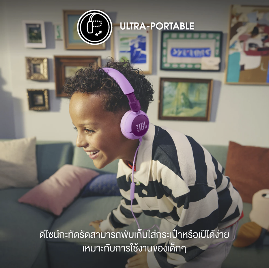 - JBL Junior 320 มาพร้อมดีไซน์กะทัดรัดที่สามารถพับแบนได้