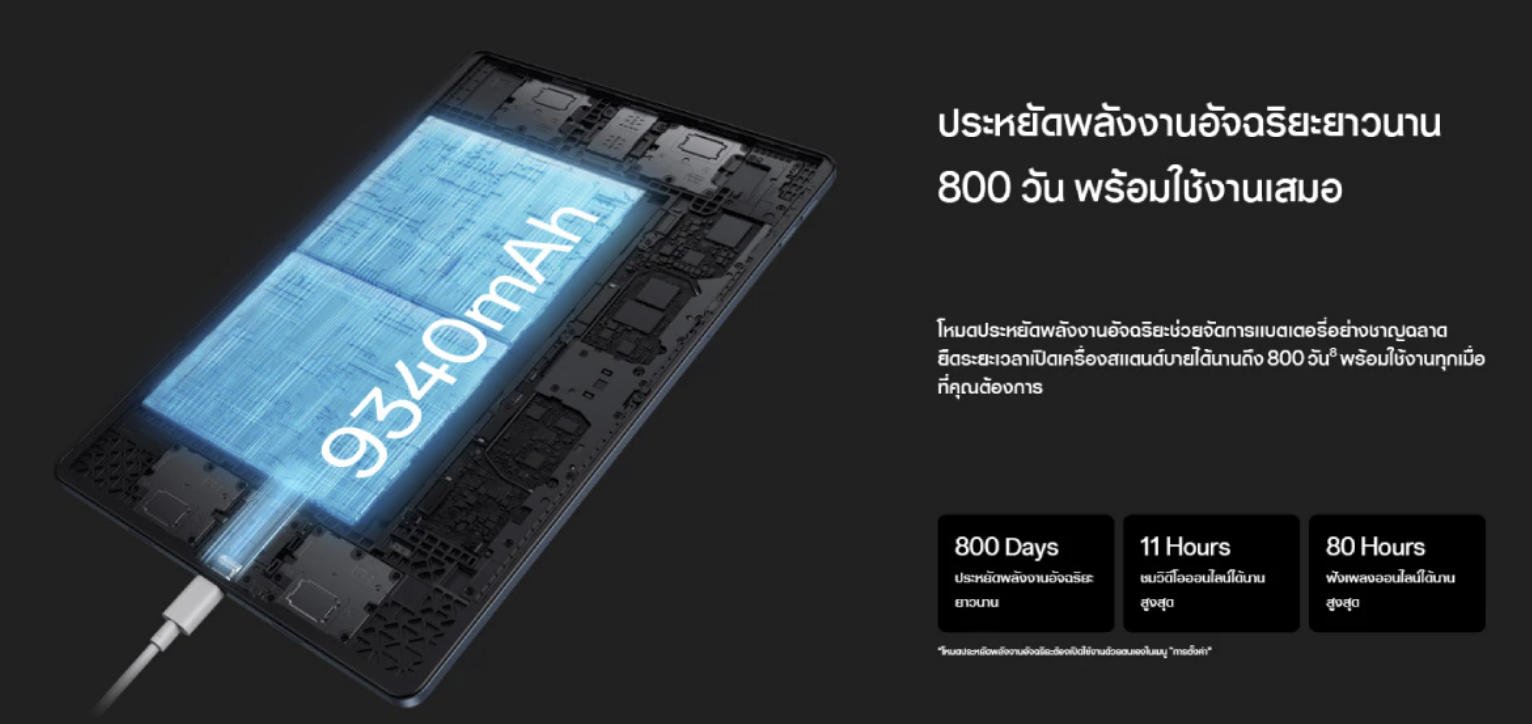 แบตเตอรี่ 9,340 mAh (Standard Battery)