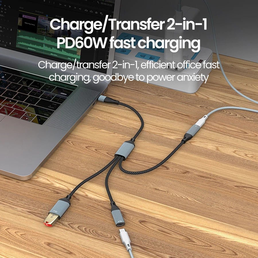 2.เปลือกอลูมิเนียมอัลลอยด์ชาร์จเร็ว PD60W เต็มรูปแบบสายไนลอนถักสองชั้นทนทาน