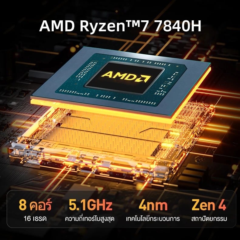 AMD Ryzen7 7840HS 8 คอร์ 16 เธรด คล็อกบูสต์สูงสุด 5.1GHz