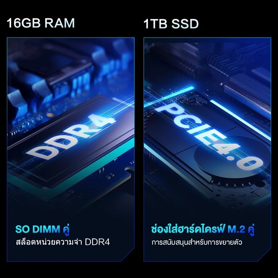 หน่วยความจำ 16GB DDR4 รองรับการติดตั้งและขยายหน่วยความจำ SO DIMM D4