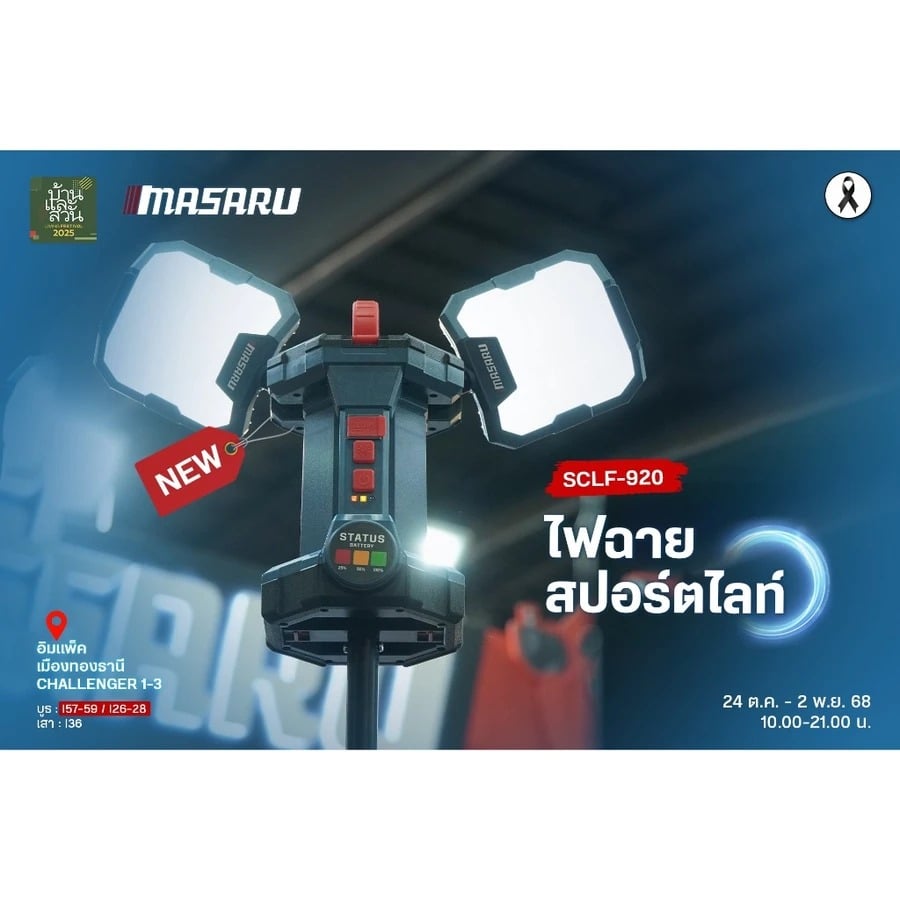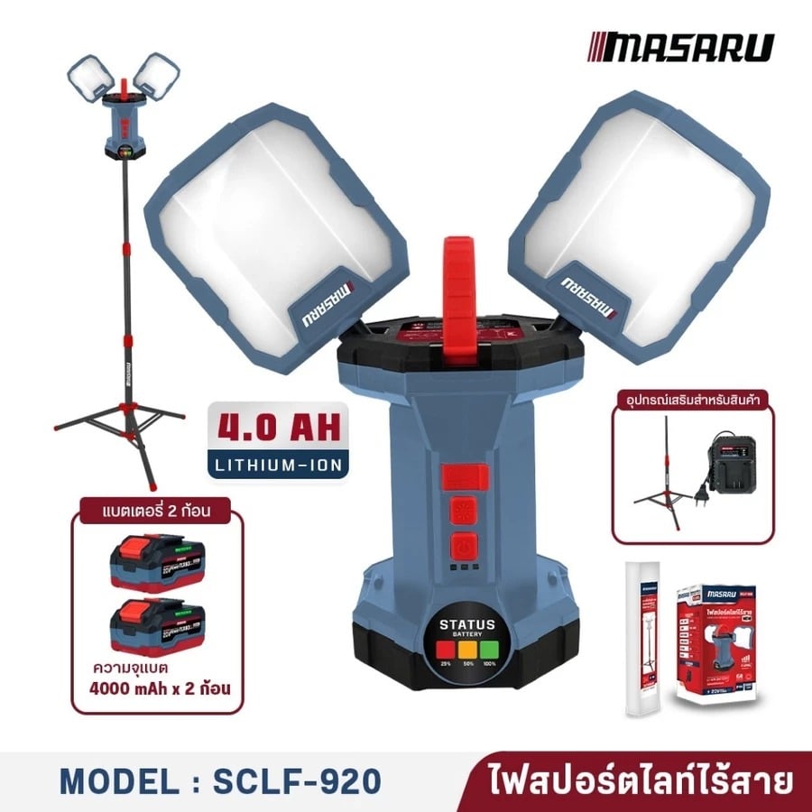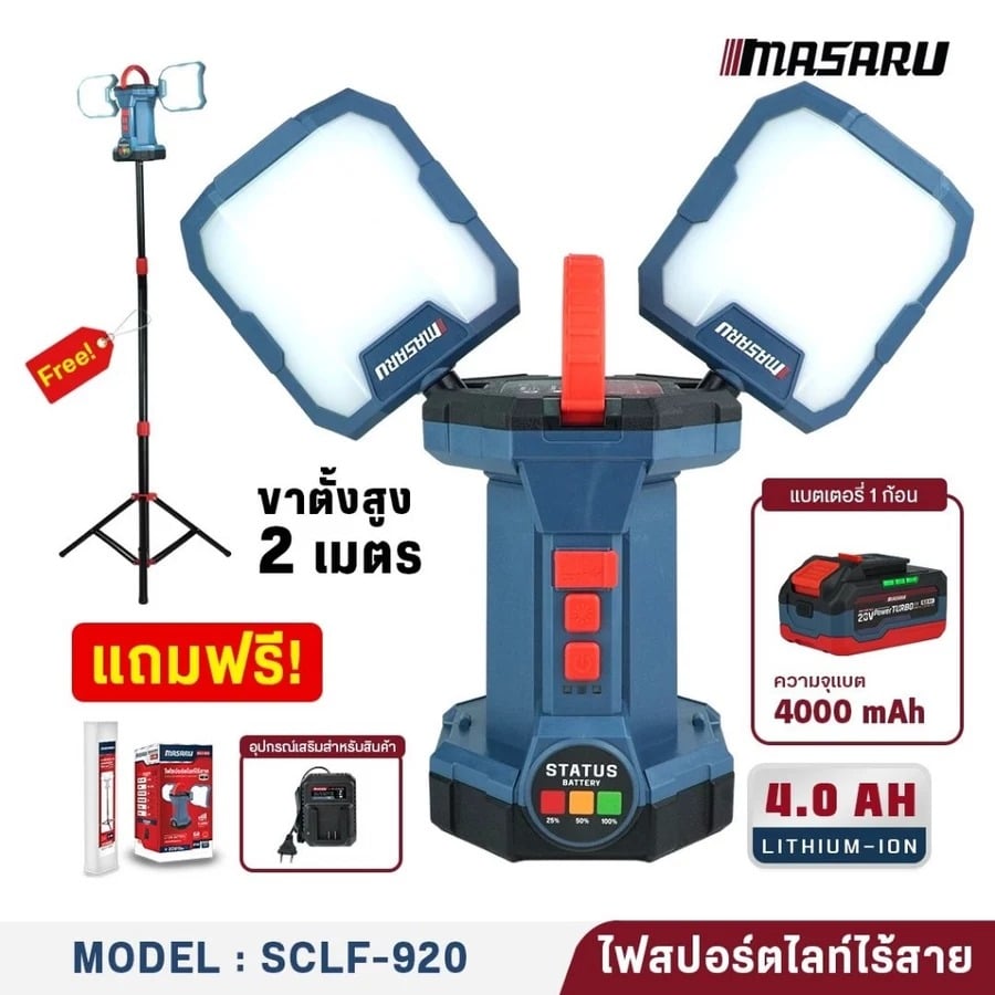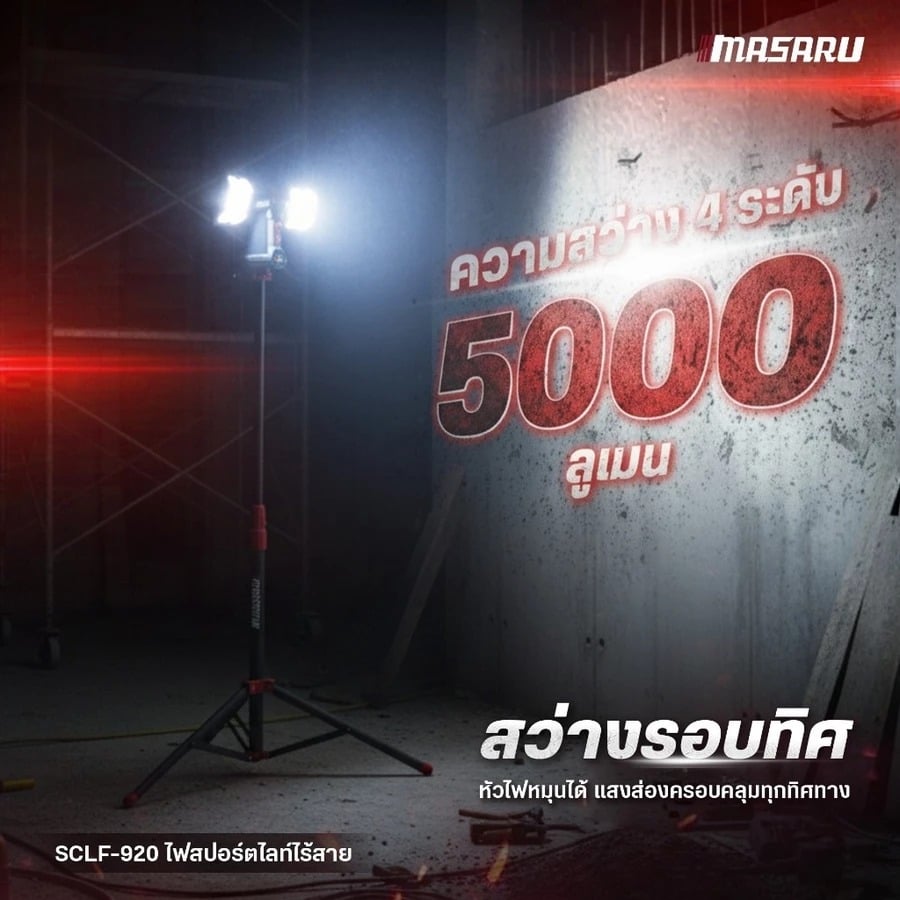 [ ใหม่ ] MASARU ไฟสปอร์ตไลท์ไร้สาย 20V ปรับแสงได้ 4 ระดับ ขนาด 5000 ลูเมน