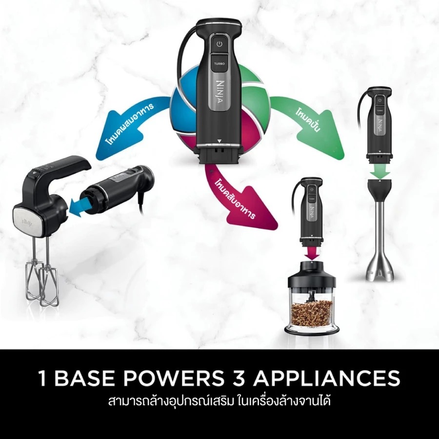 สามารถเปลี่ยนเป็นเครื่องผสมมือความเร็วสูงและเครื่องปั่นที่ทรงพลัง