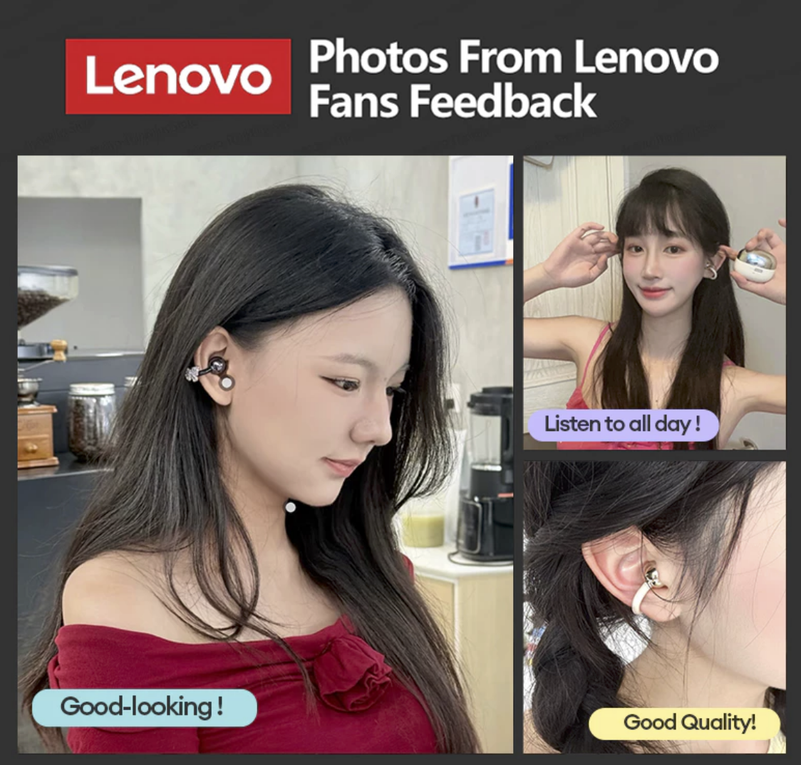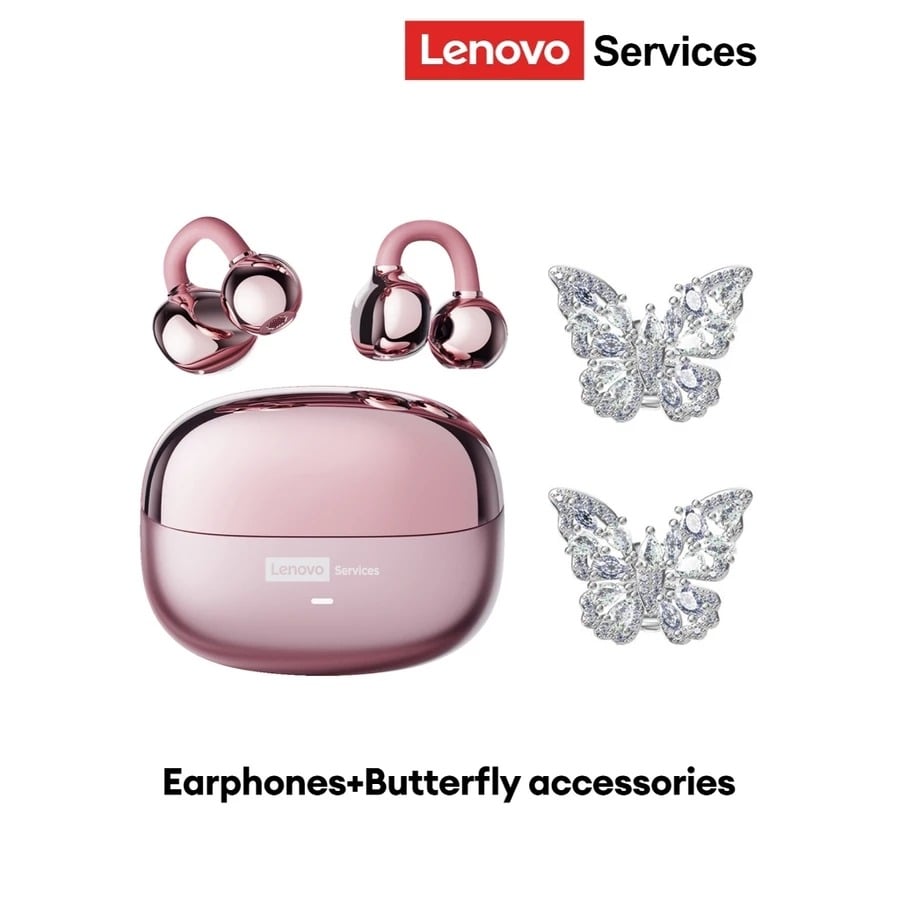 Lenovo หูฟังบลูทูธ แบบหนีบหู พร้อมต่างหูลายผีเสื้อ
