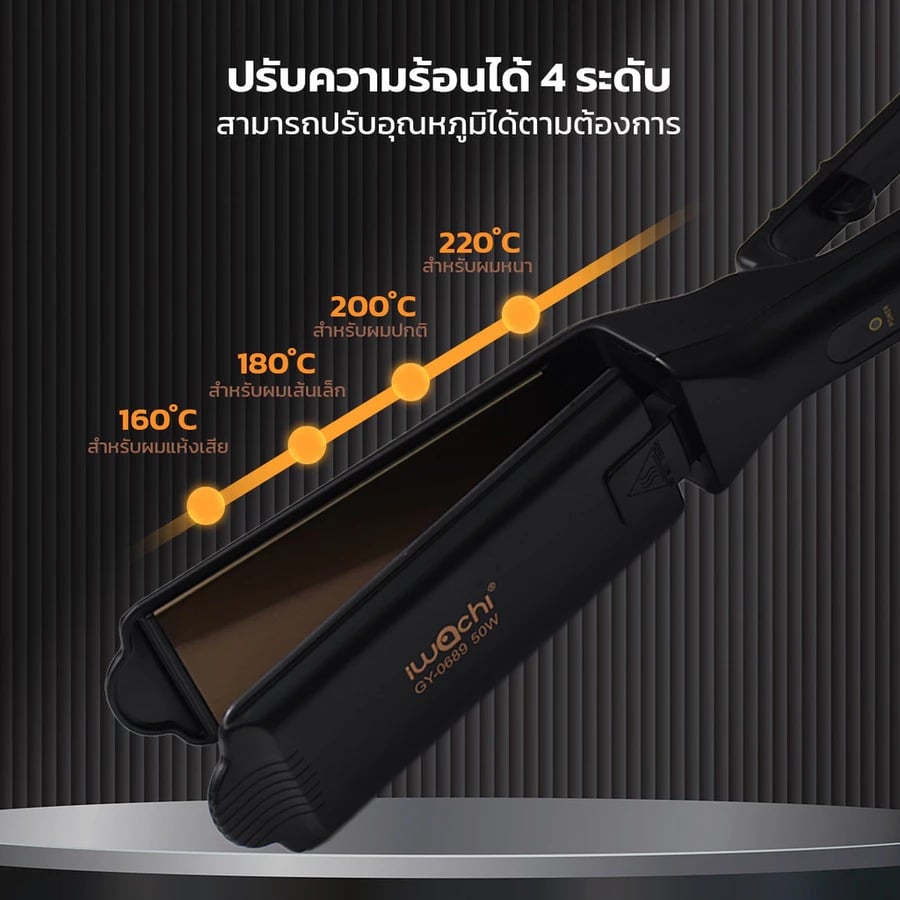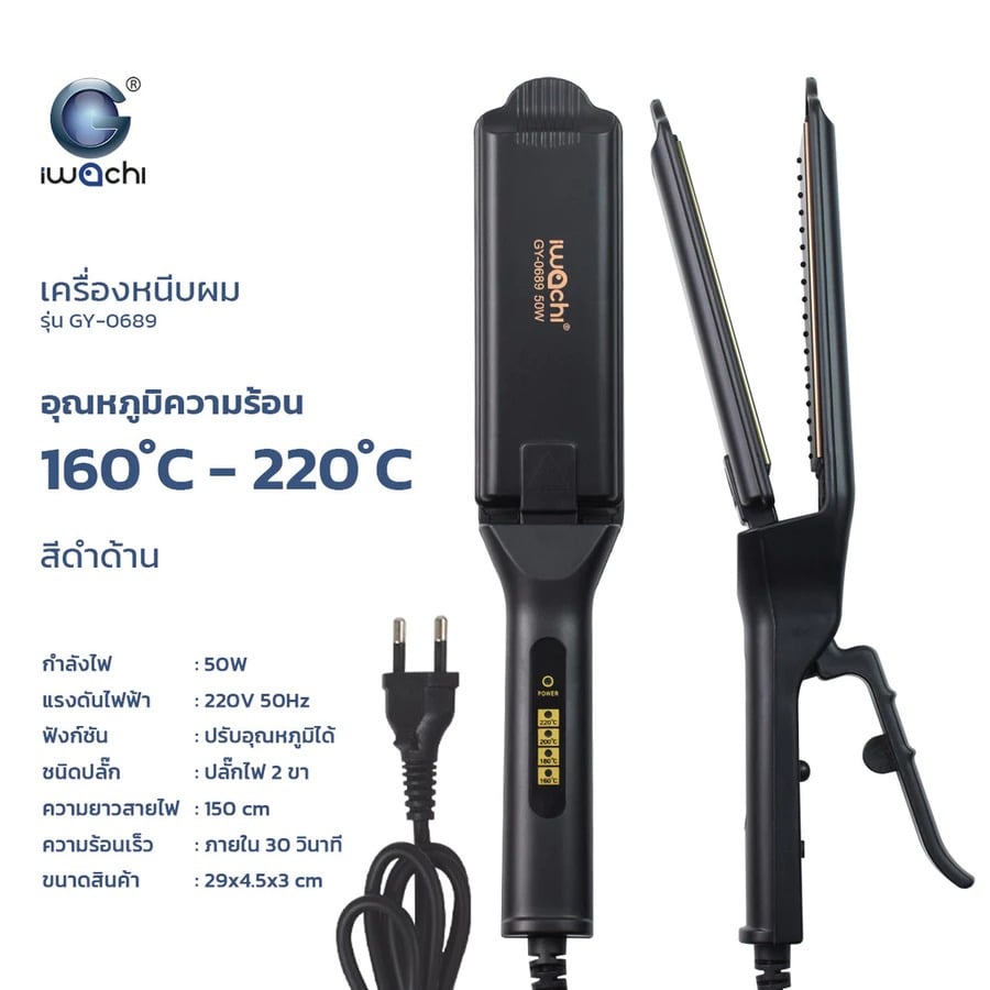 IWACHI เครื่องหนีบผม ขนาด 50 วัตต์ ร้อนเร็วภายใน 30 วินาที สีดำ
