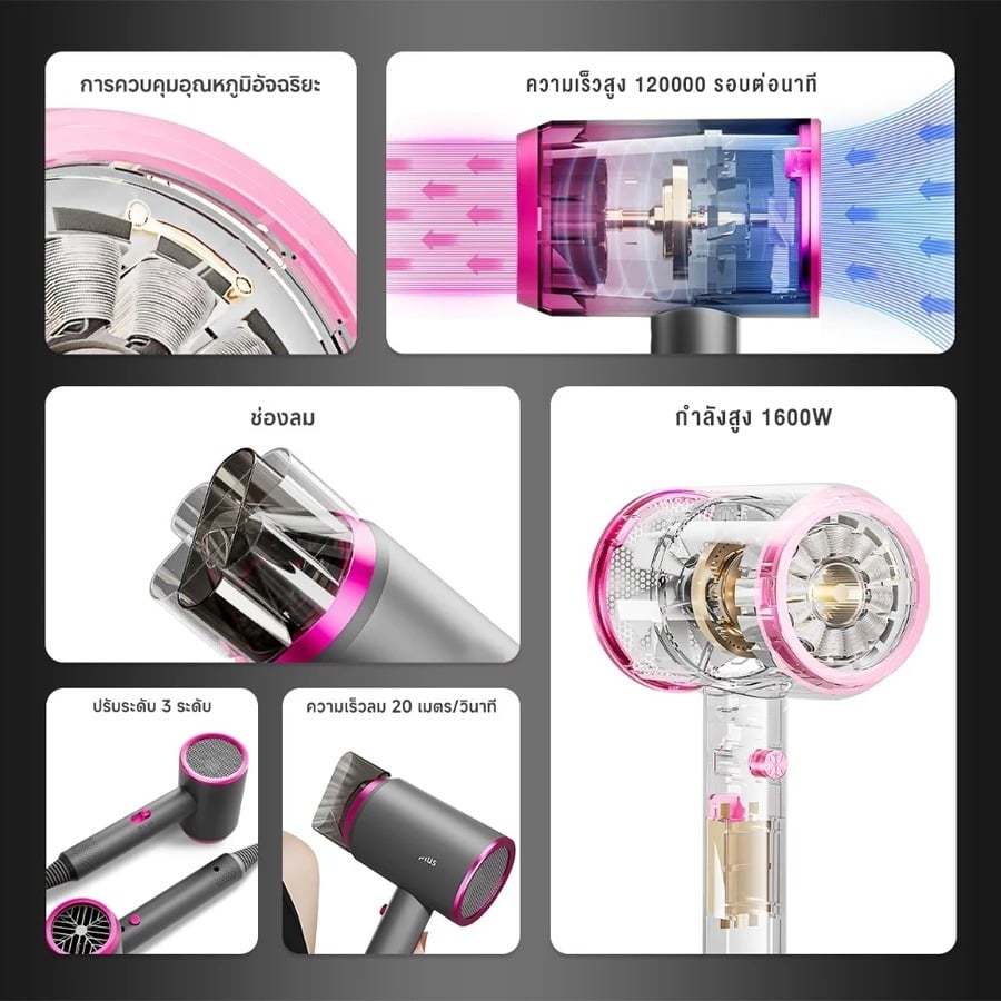 KENTO LITE ไดร์เป่าผม ปรับได้ทั้งอุณหภูมิและความเร็วลม รุ่น ไอออนลบ 30 ล้าน ผมแห้งเร็ว
