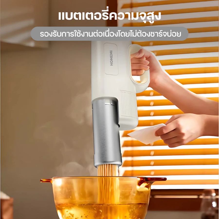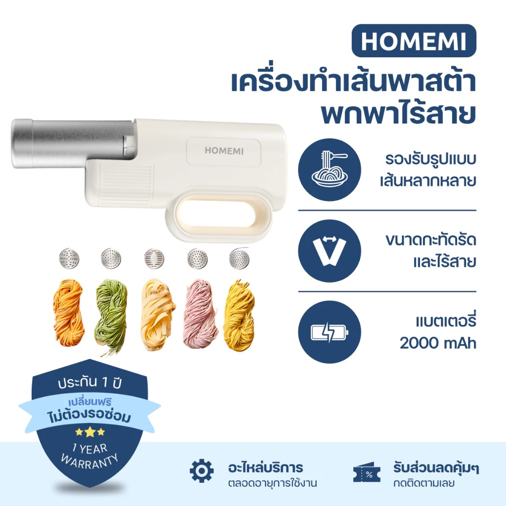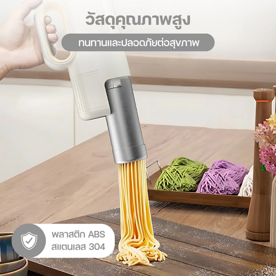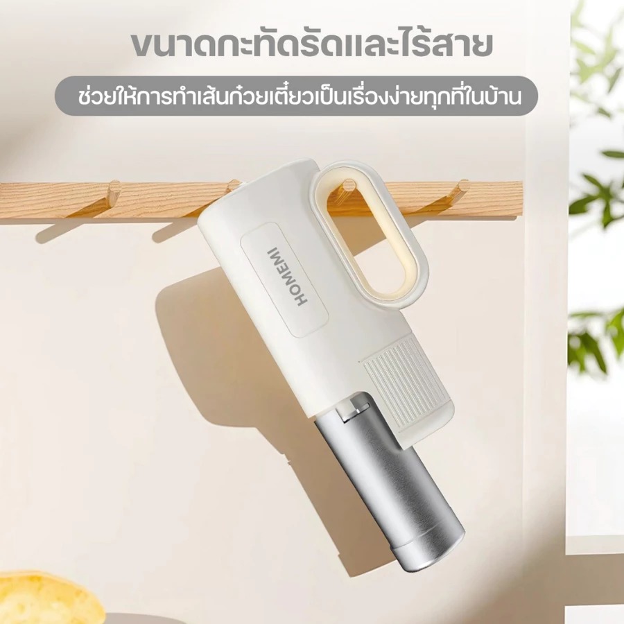 - ขนาดกะทัดรัดและไร้สาย ช่วยให้การทำเส้นก๋วยเตี๋ยวเป็นเรื่องง่ายทุกที่ในบ้าน