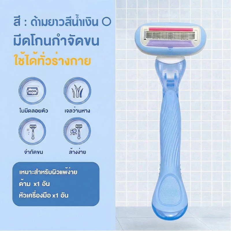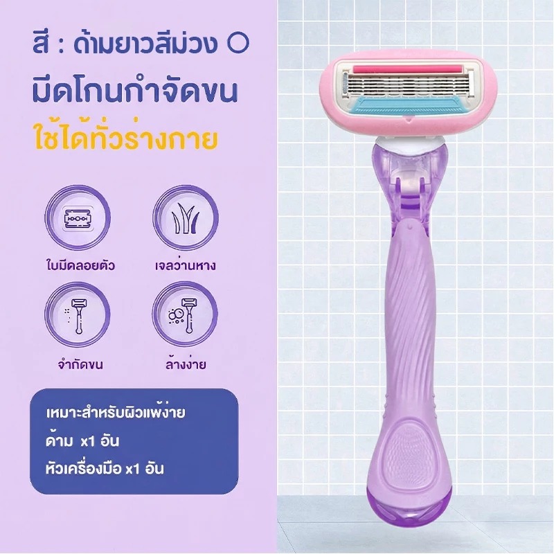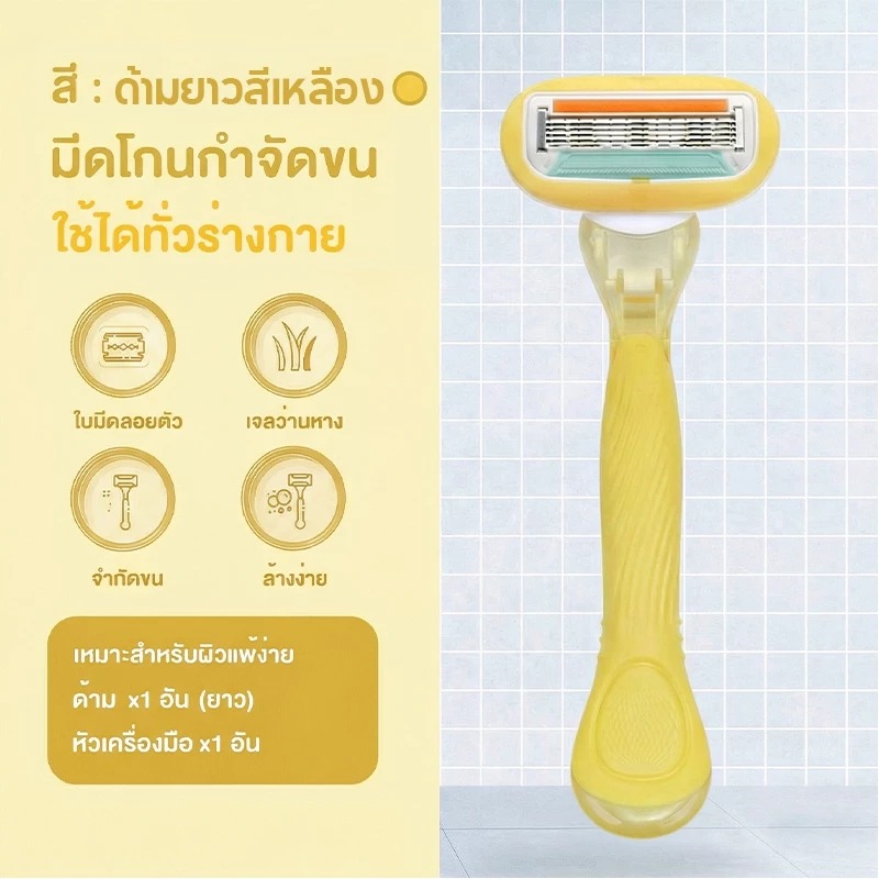 มีดโกนผู้หญิง 5 ใบีด กำจัดขนรักแร้-ขา ไม่เจ็บ ไม่มีรอยดำ รุ่นด้านยาว เข้าถึงทุกซอก