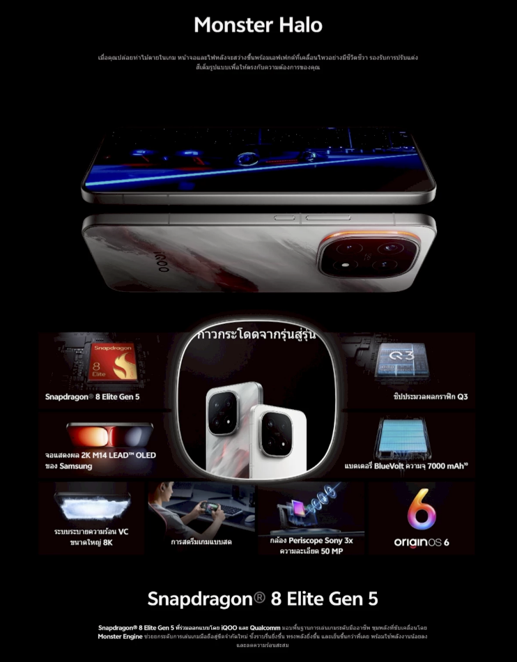ชิปประมวลผล: Qualcomm Snapdragon 8 Elite (Gen 5) พร้อมชิปเกมมิ่ง Q3