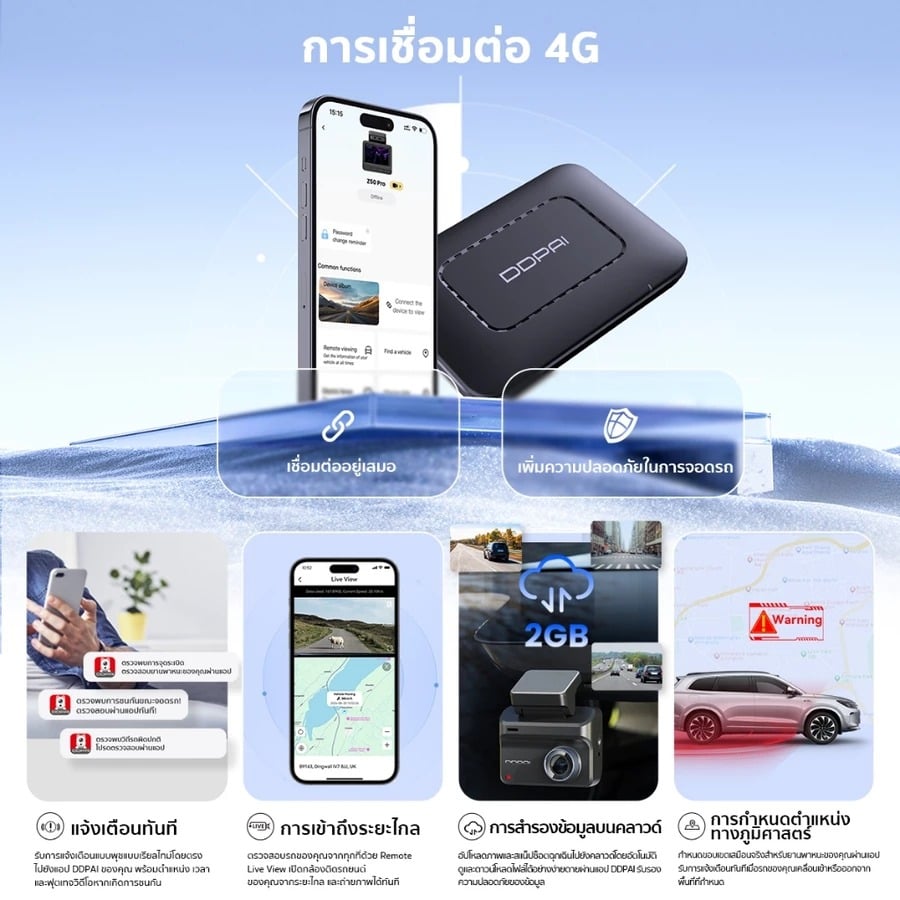 3.การเชื่อมต่อ 4G รับการแจ้งเตือนทันทีบนแอป DDPAI พร้อมตำแหน่ง เวลา และภาพ หากมีเหตุการณ์ผิดปกติเกิดขึ้น
